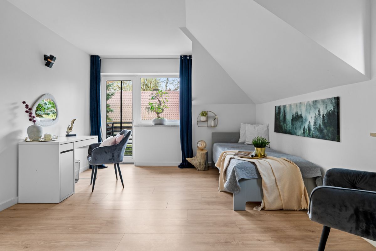 sypialnia z wyjściem na balkon