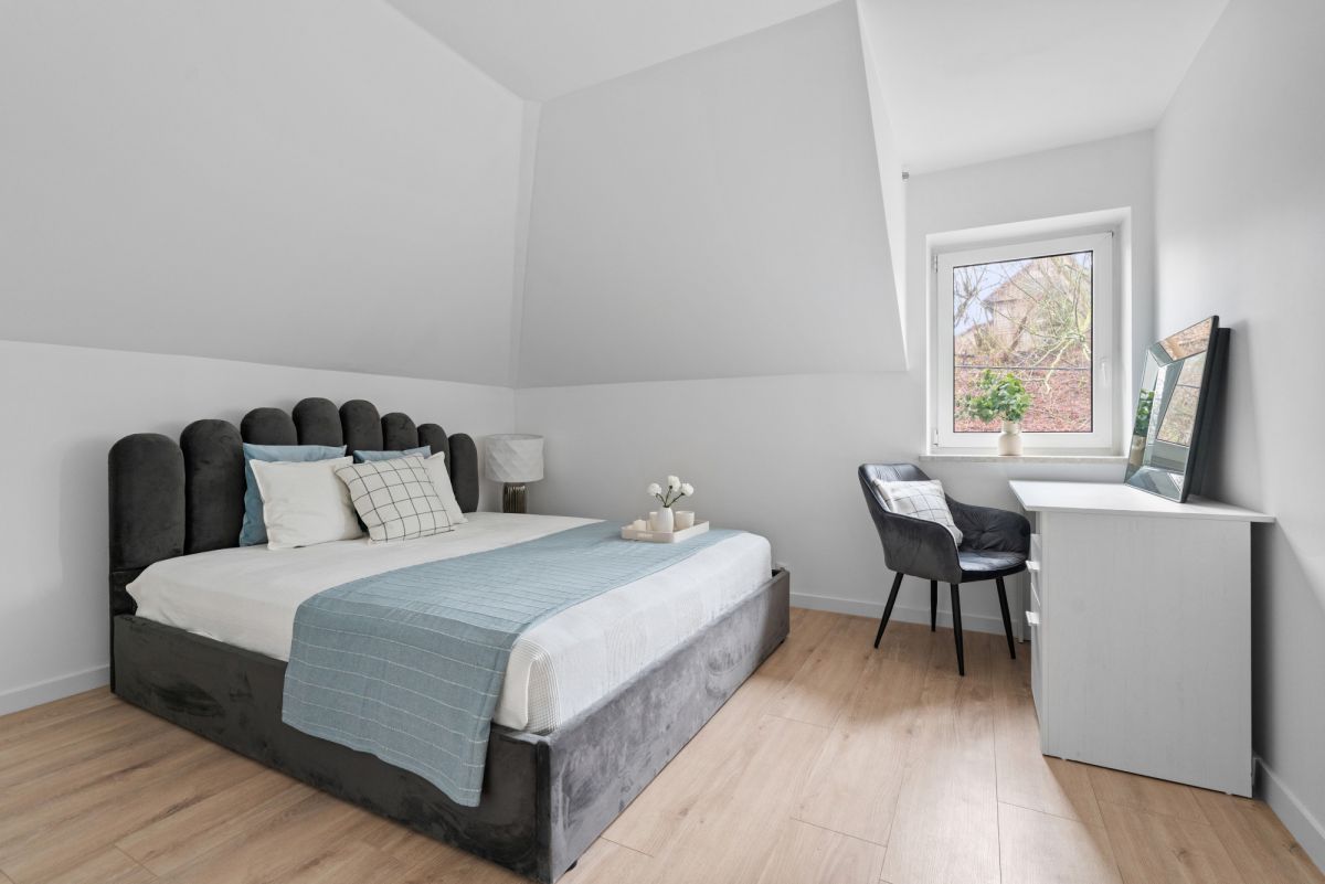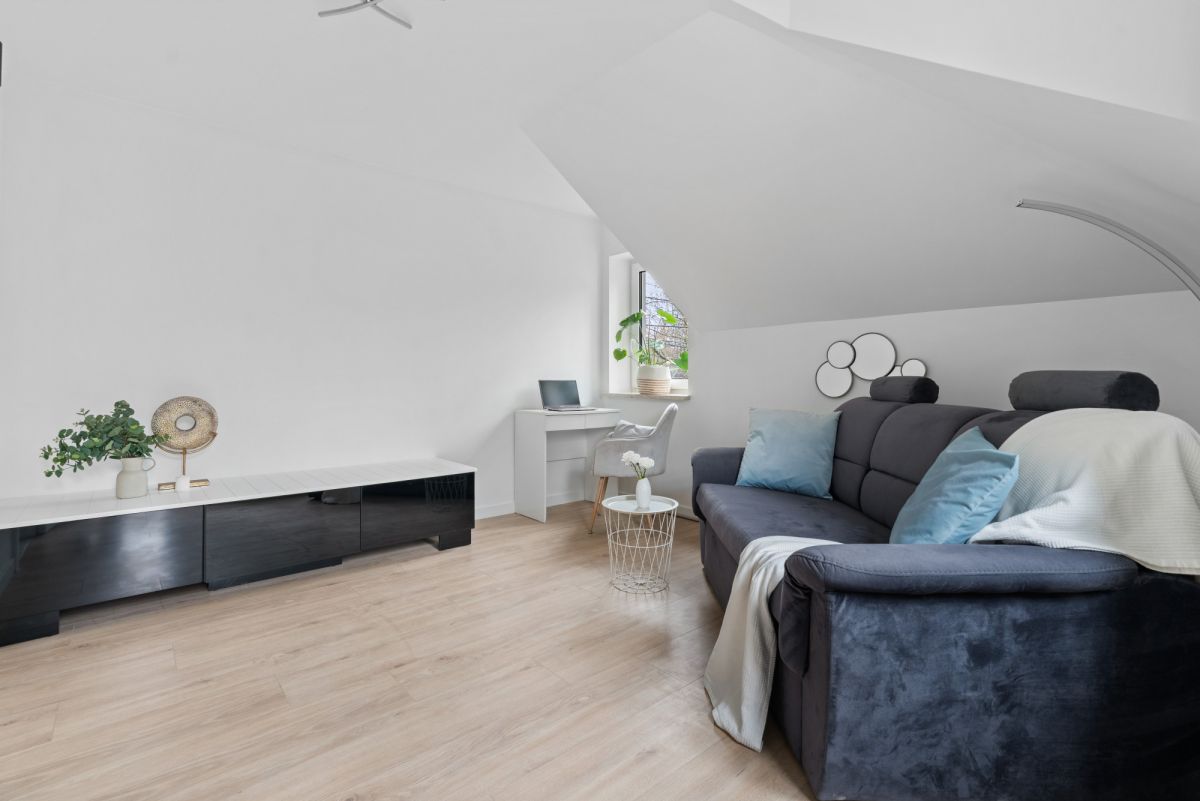 Mieszkanie położone na piętrze domu wolnostojącego. Jest w pełni umeblowane i wyposażone w niezbędny sprzęt AGD, gotowe do wprowadzenia się. Do dyspozycji najemców pozostaje: